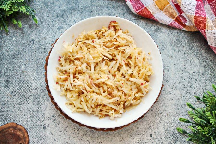 Яблоки очистите от кожуры, сердцевины и натрите на крупной терке.