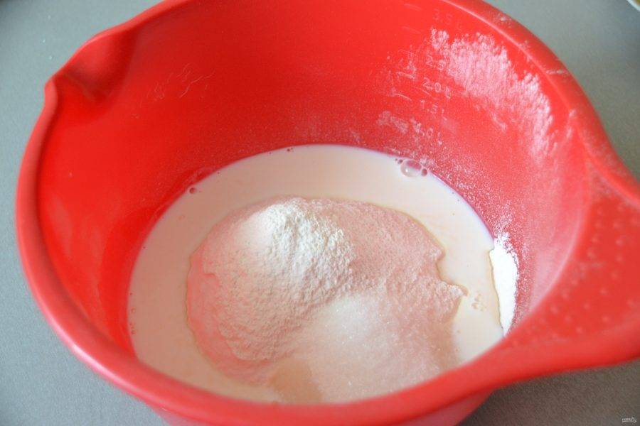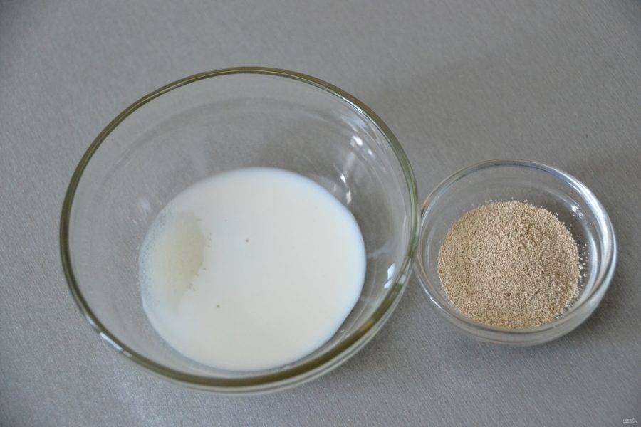 Смешайте 30 мл. молока, сухие дрожжи и 1 ч.л. сахара, дайте смести постоять примерно 5-7 минут.