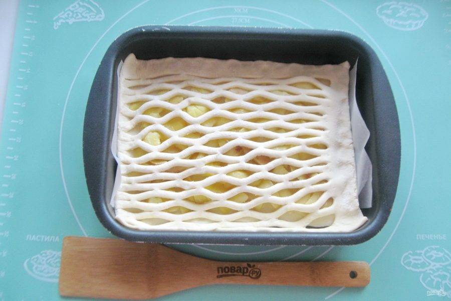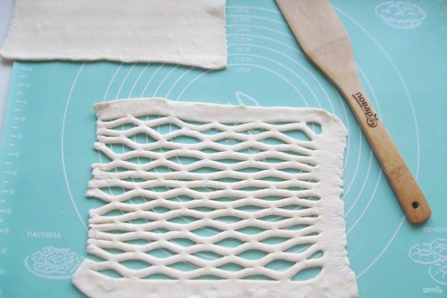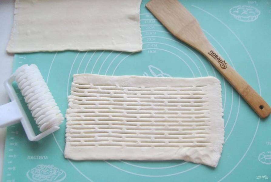 Точно также раскатайте второй пласт и с помощью специального валика сделайте надрезы на тесте.