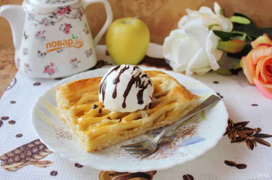 Яблочный пирог с мороженым — отличный десерт, который можно подать в будни и праздники. Мой пирог из готового слоеного теста, которое до минимума упростит и сократит время приготовления этого блюда.