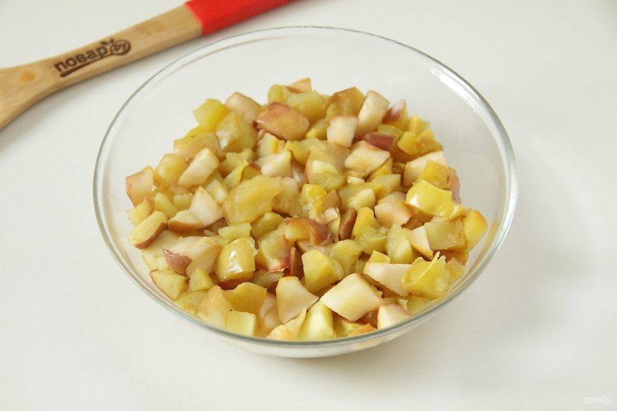 Запеките яблоки в микроволновой печи до мягкости. В зависимости от сорта яблок и мощности микроволновки может уйти от 4 до 8 минут. Один-два раза яблоки необходимо в процессе перемешать.