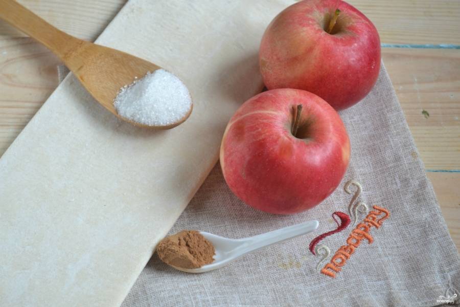 Подготовьте все необходимые ингредиенты. Тесто заранее достаньте из холодильника, чтобы оно успело разморозиться.
