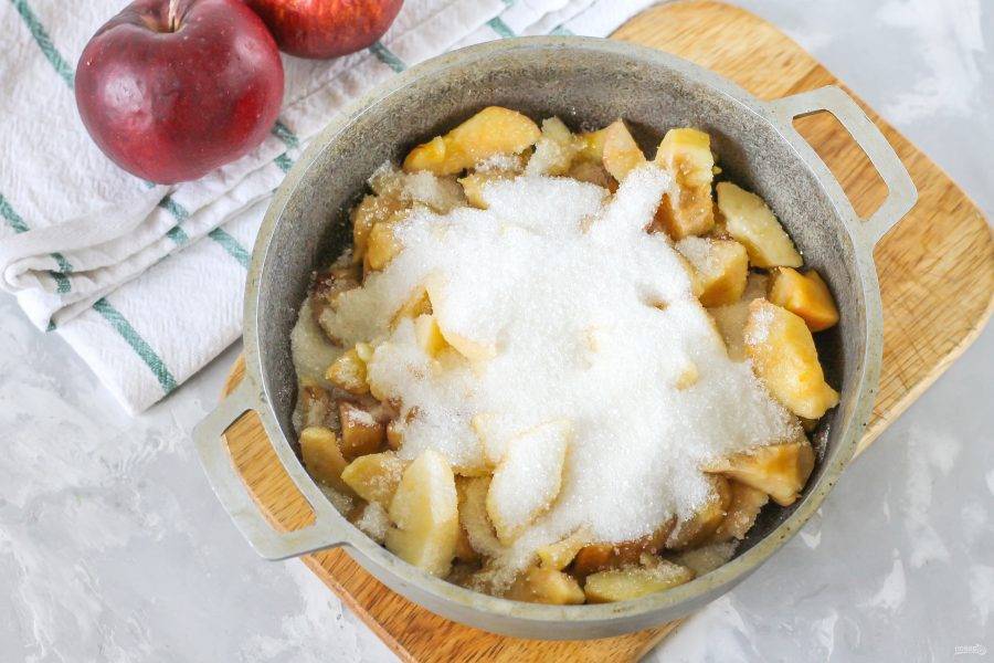 Тушите яблоки примерно 15-20 минут до мягкости, прикрыв емкость крышкой.
