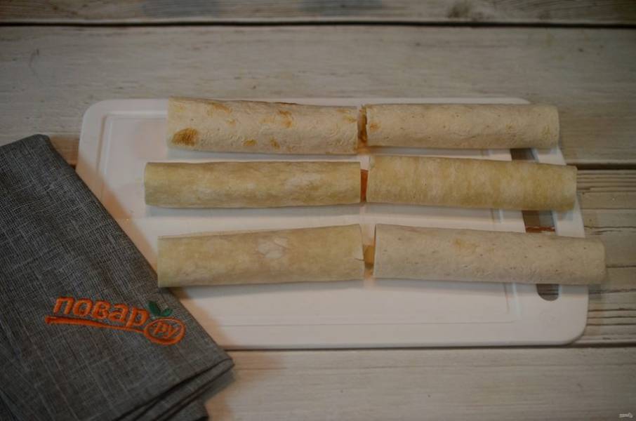 5. Формируйте такие трубочки, пока лаваш и начинка не закончатся.