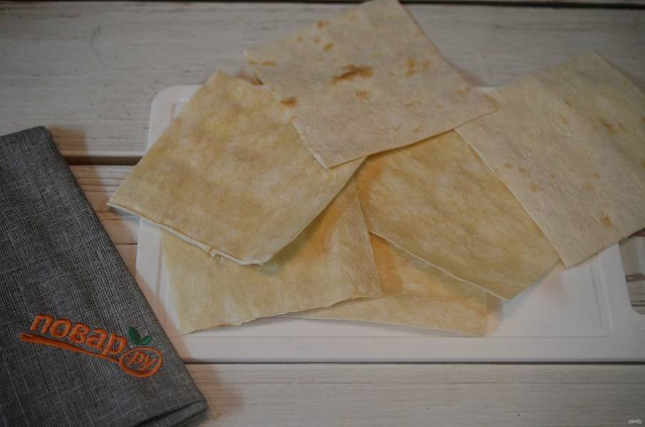 3. Лаваш разрежьте на квадраты.