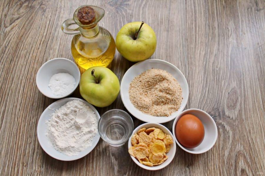 Подготовьте все необходимые ингредиенты для приготовления яблок в панировке.