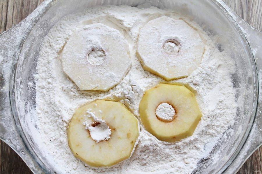 Обваляйте каждый кружочек в муке.