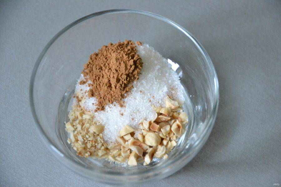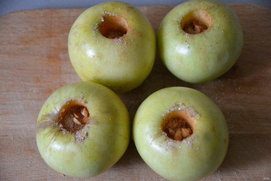 Заполните сахарно-ореховой смесью выемки у яблок.