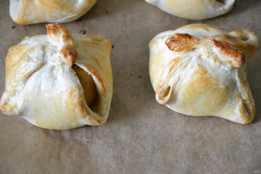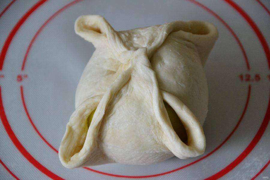 Соберите кончики теста к центру и хорошо защипните, чтобы при выпечке они не раскрылись.