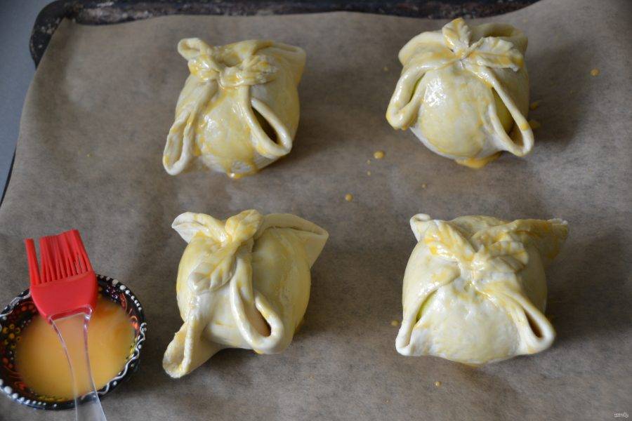 Смажьте перед выпечкой смесью яичного желтка и молока.