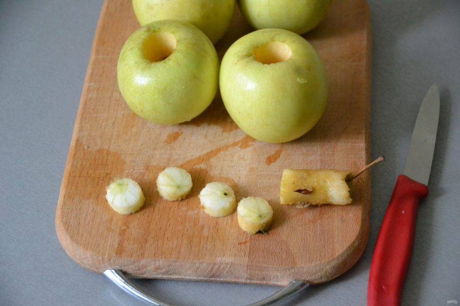 Отрежьте от удаленных сердцевинок по кусочку, толщиной примерно 1 см.