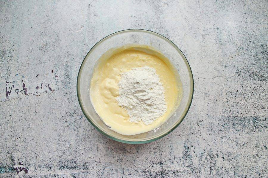 Добавьте в массу крахмал и еще раз взбейте.