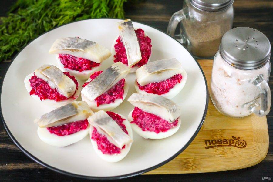Видео рецепт "Яйца фаршированные свеклой и сельдью"
