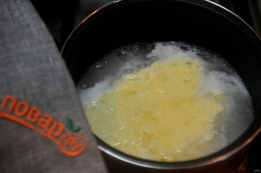 3. Вскипятите воду. Глубина должна быть 10-12 см. Ложкой создайте легкий водоворот.