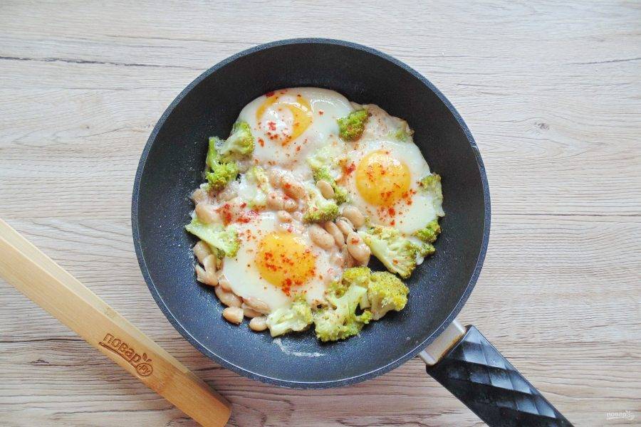 На небольшом огне жарьте яичницу до полной готовности 8-10 минут.