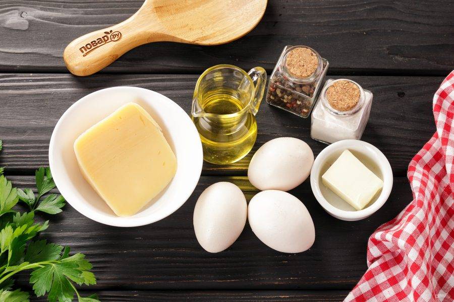 Сделайте самый маленький огонь под сковородой — это второй секрет удачной глазуньи. На большом огне белок приготовится быстрее желтка и может начать пригорать. Когда белок схватится, добавьте соль и перец. Учитывайте, что яичница будет с соленым сыром, не пересолите. Если готовите для маленьких детей, то перец можно исключить.