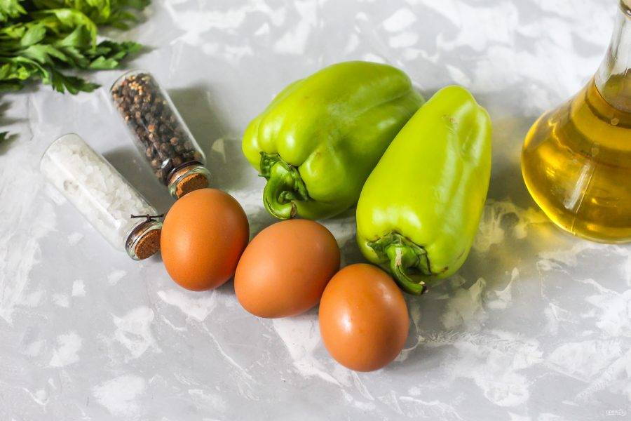 Подготовьте указанные ингредиенты. Приобретите перец любого цвета: зеленый, красный, желтый, но обязательно не острый!