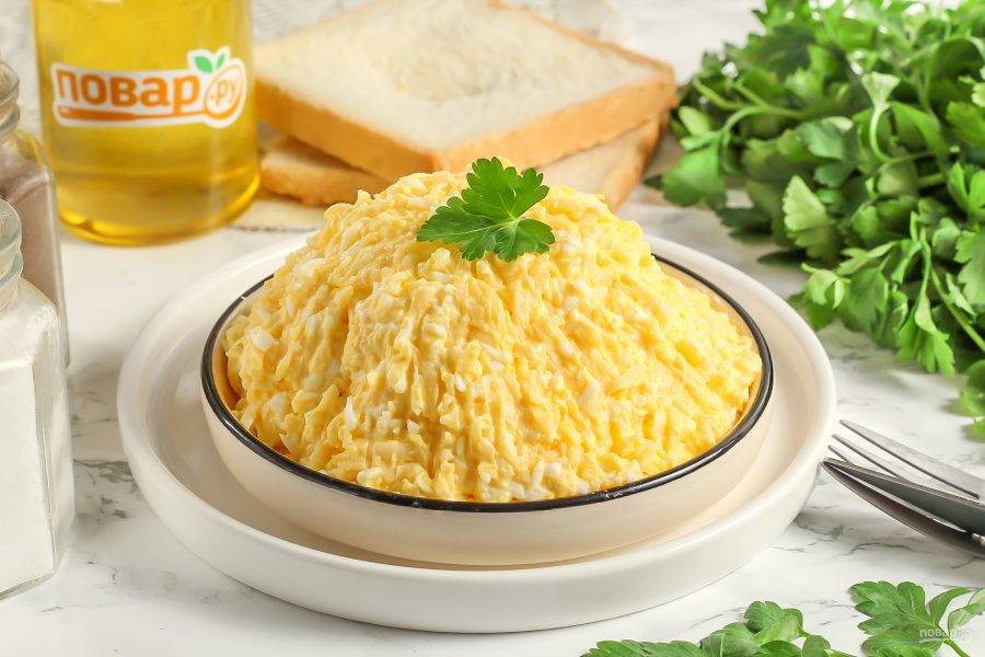 Выложите яично-сырный паштет в пиалу или креманку и подайте к столу.