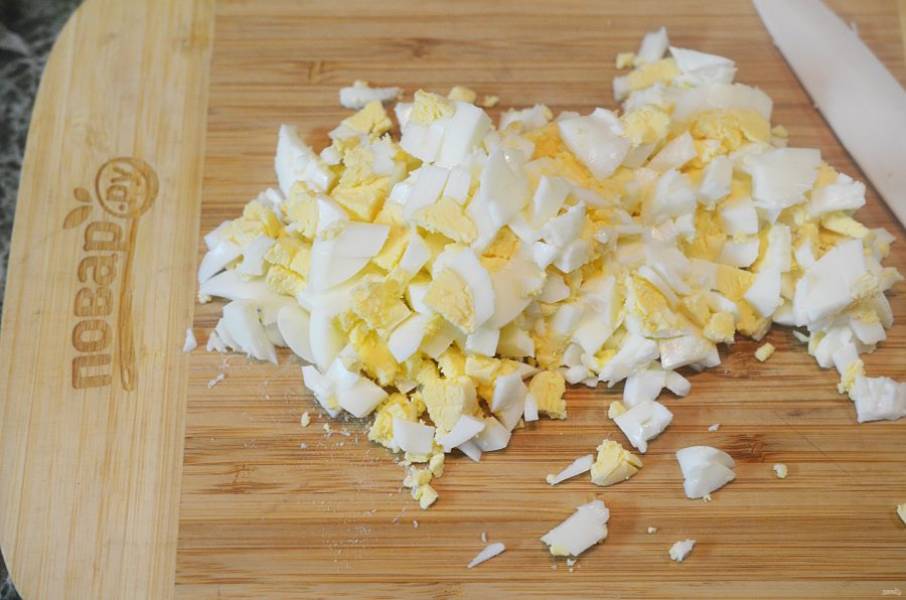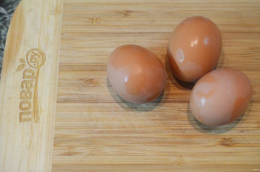 1. Отварите яйца 1 минуту, затем снимите с огня, но оставьте в горячей воде яйца еще на 10 минут.
