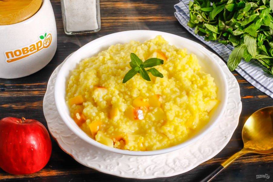 Если ваш ребенок не хочет есть пшенную кашу или свежие яблоки, то соедините их вместе и накормите его янтарной кашей, сладкой и очень вкусной. Поверьте, ваш малыш даже попросит добавки такого блюда!