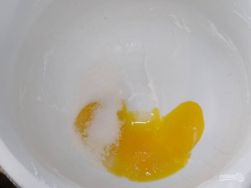 Затем взбейте желтки с сахаром.