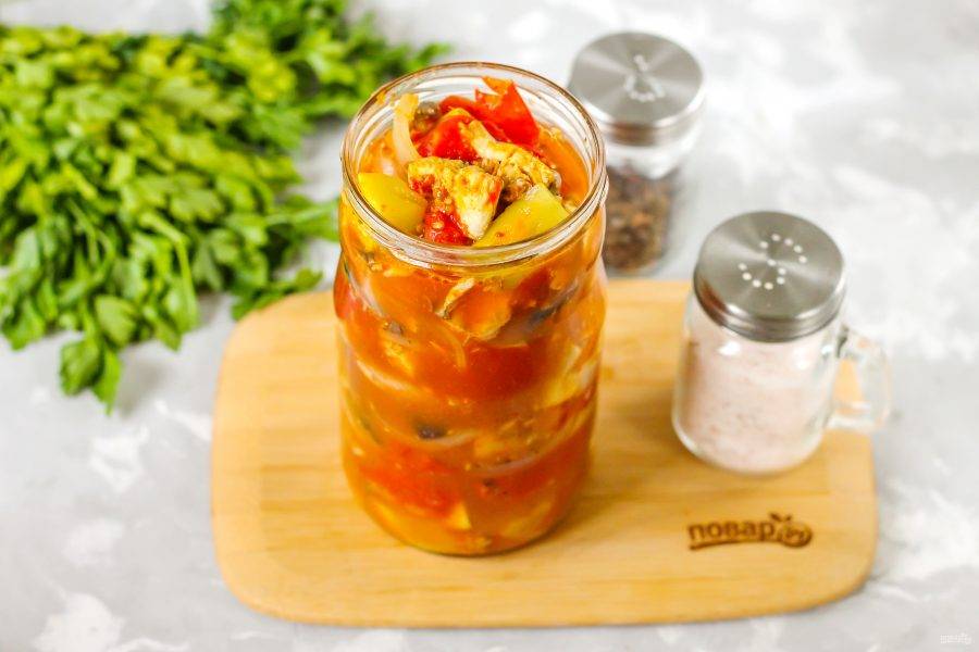 Сочное блюдо из скумбрии и овощей на зиму вы можете заготовить в домашних условиях всего лишь за 1 час и закатать в банки. Хранить заготовку нужно только в прохладном месте, иначе она испортится!