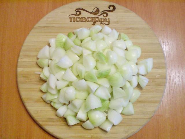 Лук режем на 4-8 частей, в зависимости от величины луковицы.