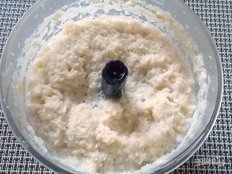 Добавьте чеснок, еще 1/4 часть воды и снова пробить блендером.