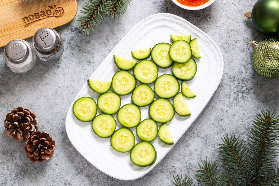 Выложите огурцы в форме елочки.