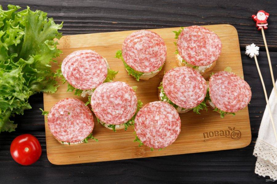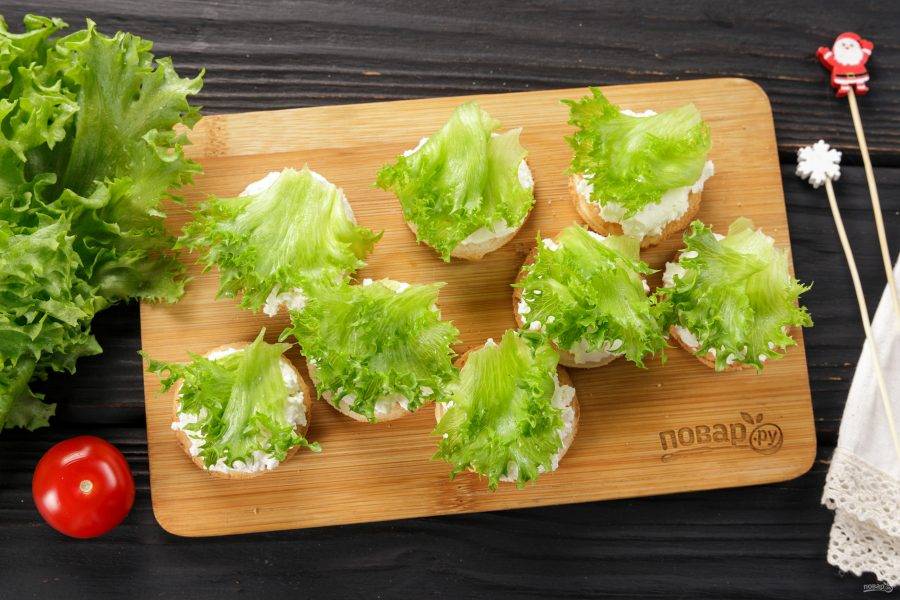 Сверху выложите листики салата.