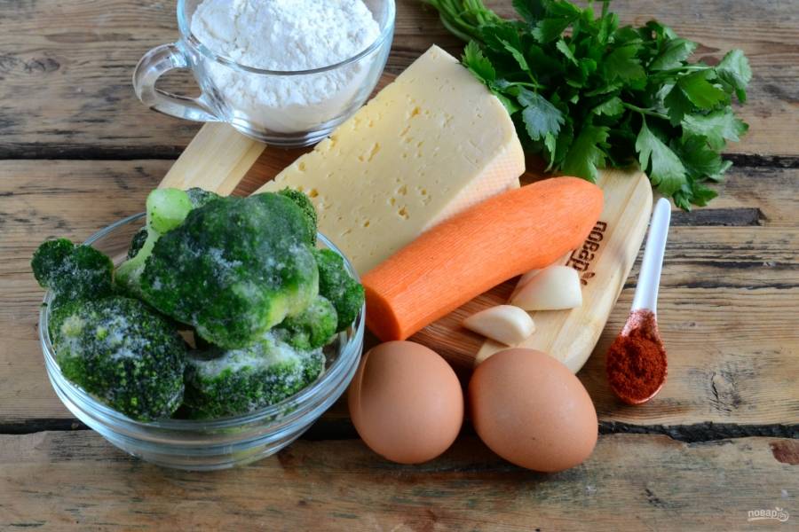 Подготовьте все необходимые ингредиенты. Морковь и чеснок очистите, брокколи отварите до мягкости.