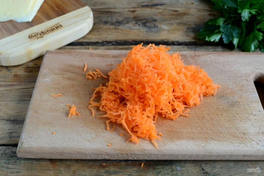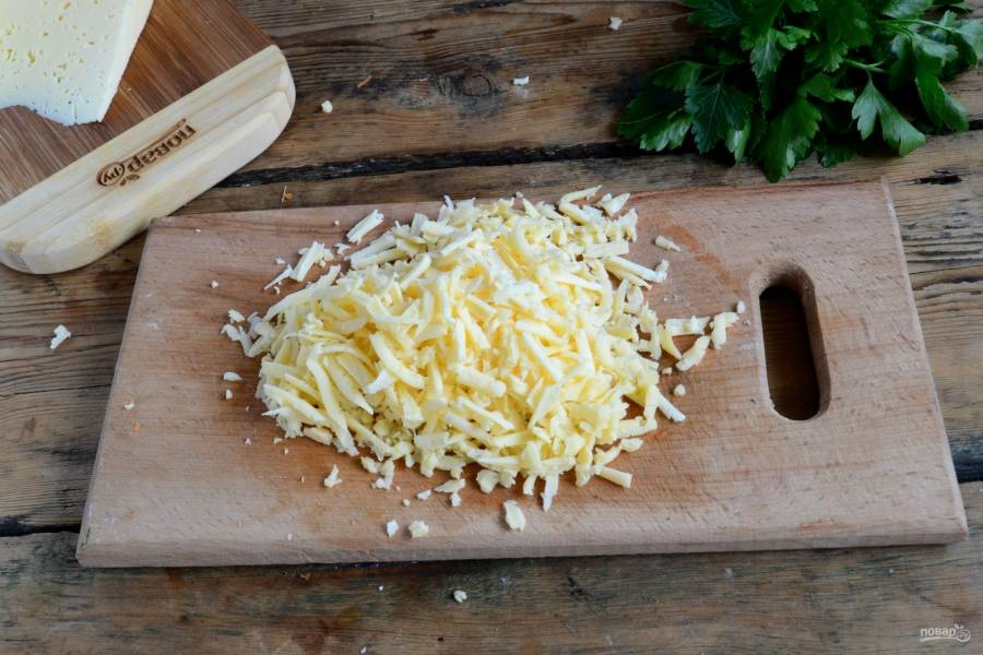 Твердый сыр натрите на крупной терке (по желанию можно также натереть его на мелкой терке).