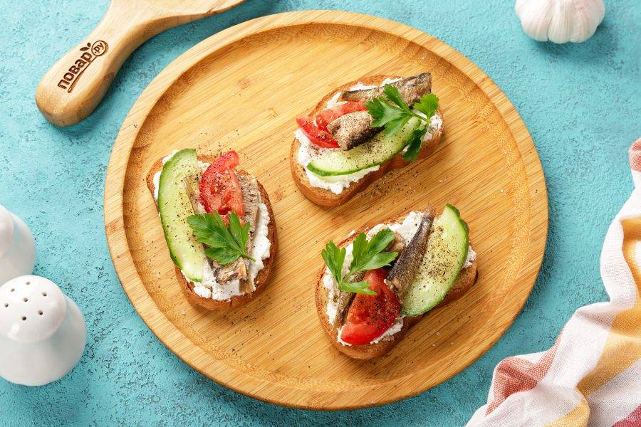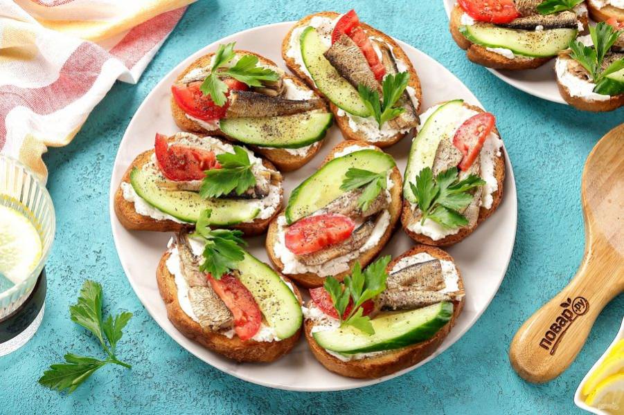 Закуска со шпротами готова. Простая, но в то же время изысканная и очень вкусная. Приятного аппетита!