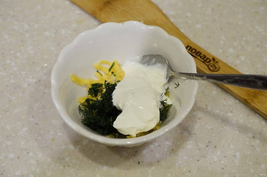 3. Добавьте нарезанный укроп и сметану, посолите и перемешайте.