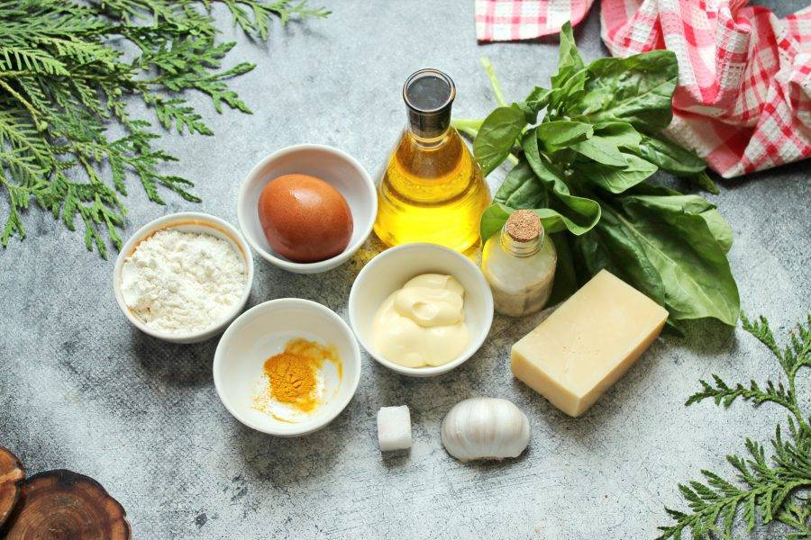Подготовьте все необходимые ингредиенты для приготовления закуски "Виктория". Шпинат переберите и тщательно вымойте.