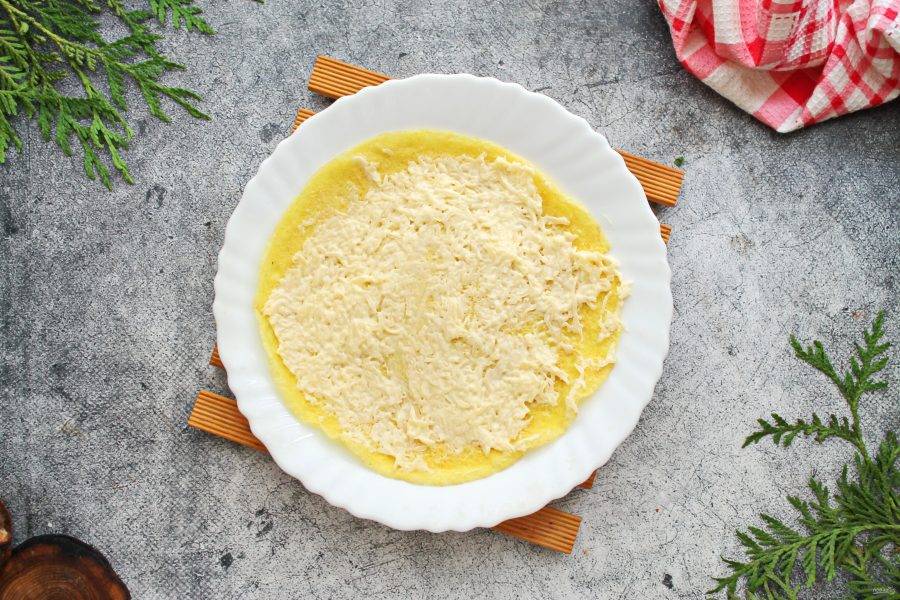 Испеките из желтого теста блинчики, не зажаривая. Дайте всем блинчикам остыть.