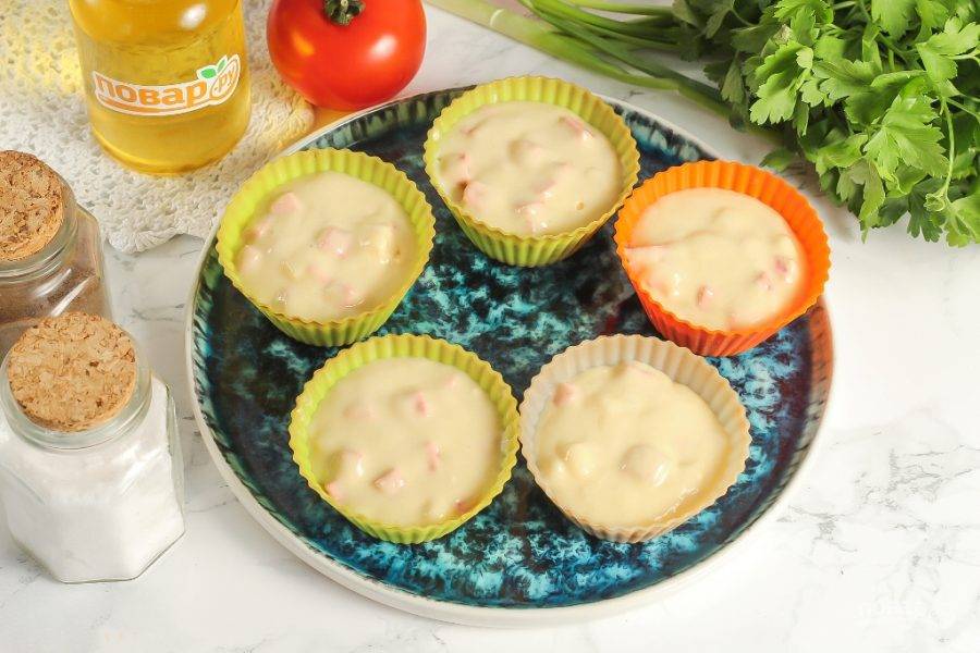 Разогрейте духовку до 180 градусов. Выложите тесто на две трети в формочки для кексов и отправьте в духовку на средний ярус.