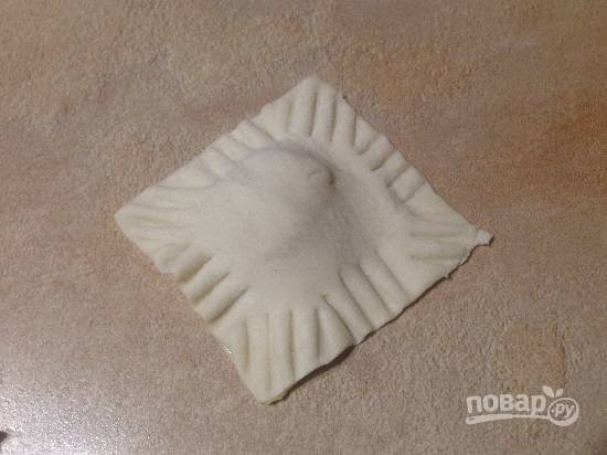 5. У каждого квадратика-слойки прищипываем края и вилкой пройдемся по краям для красоты и надежности.