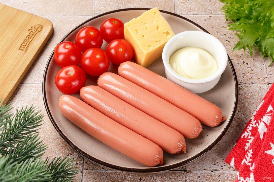 Закусочные "Змейки" из сосисок с помидорами и сыром