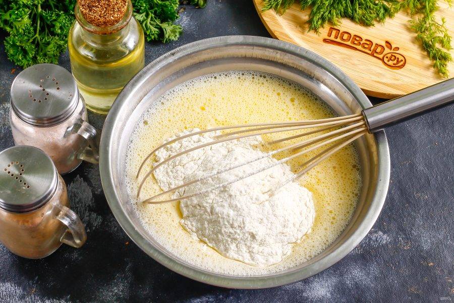 - Мука пшеничная 8-9 ст. ложек в зависимости от величины яиц