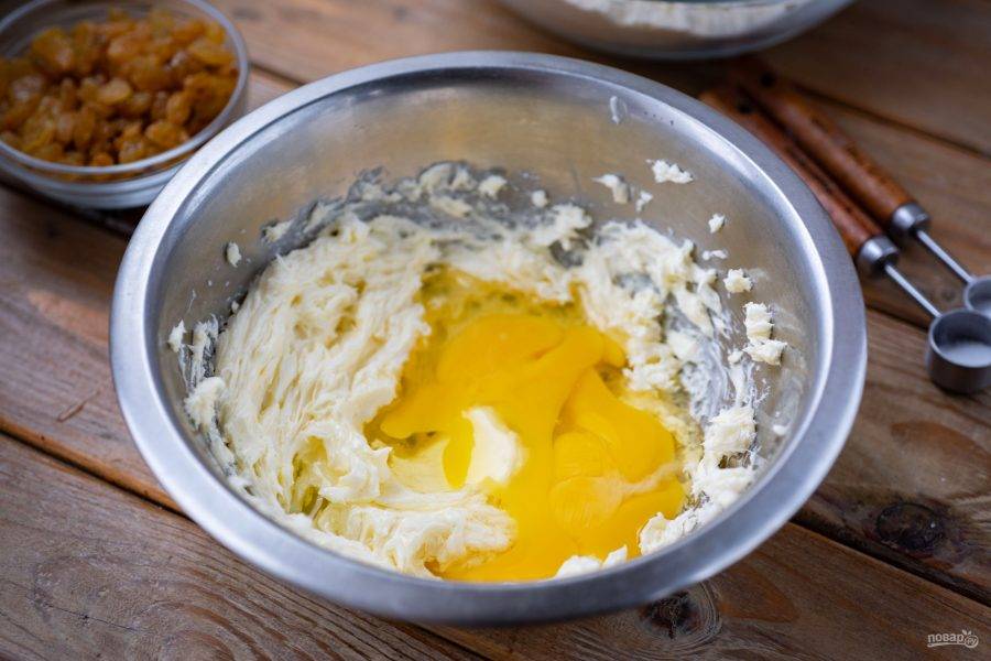 К масляной массе вбейте яйца.
