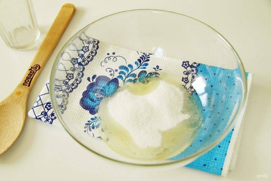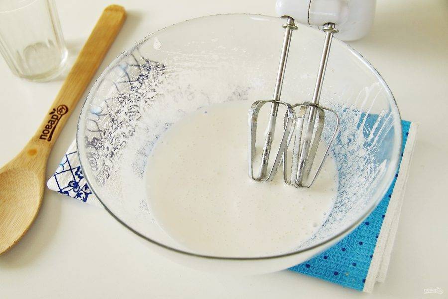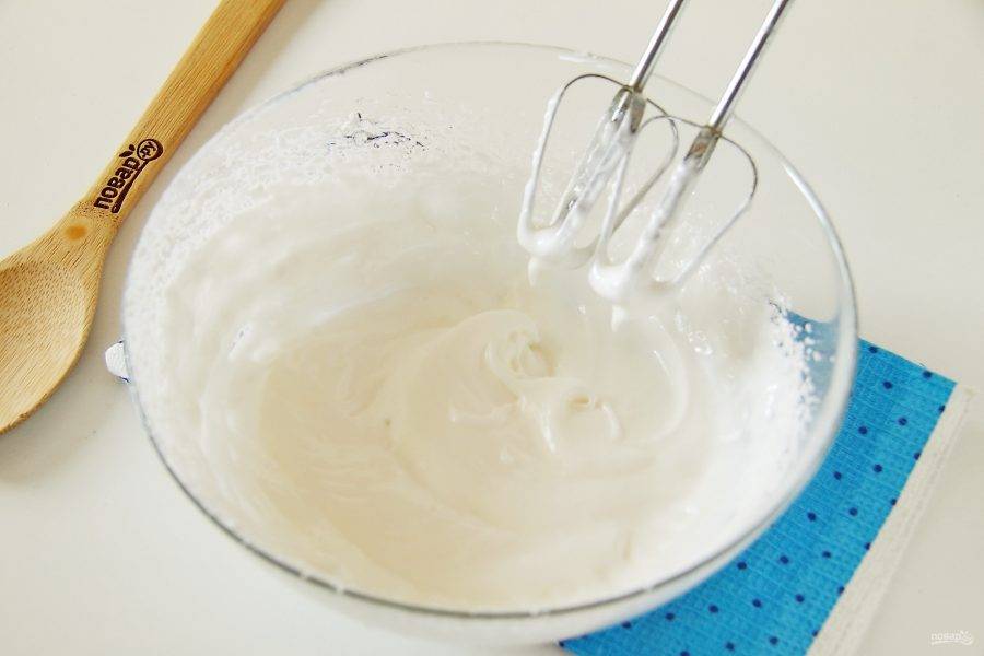Взбейте белки с сахаром до появления белой устойчивой пены.