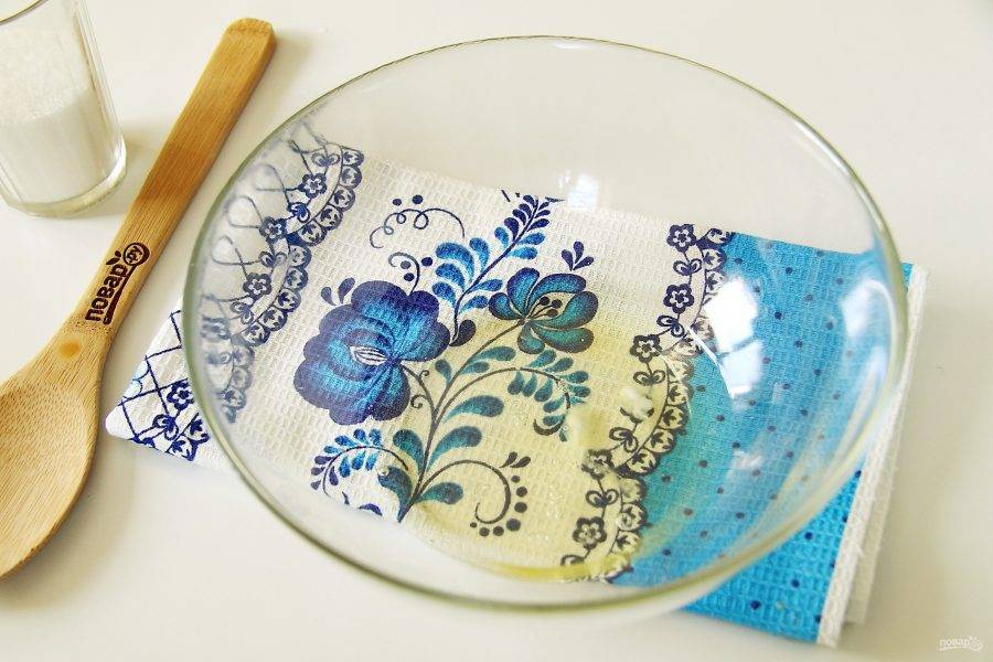 Отделите белки от желтков. Посуда, как и венчики для взбивания должны быть чистыми и сухими.