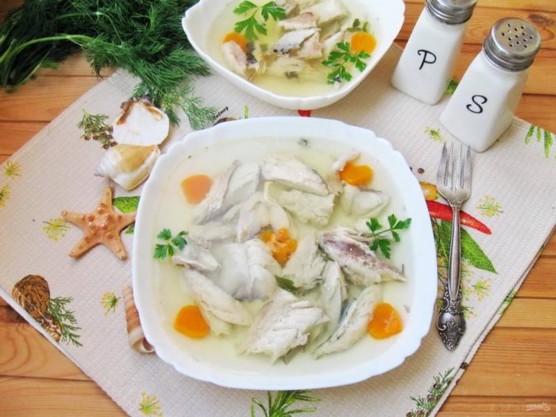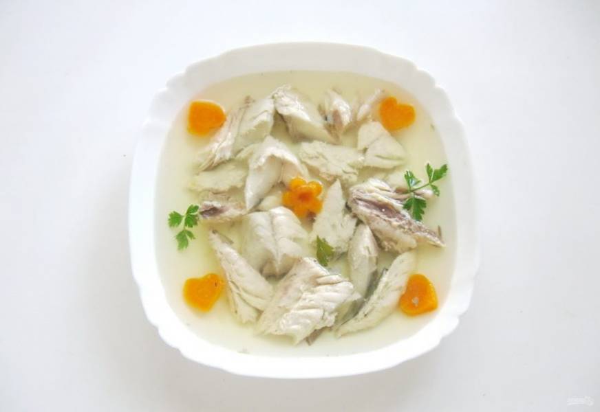 Заливное из скумбрии - отличная закуска в будни и праздники. Нежные кусочки отварной рыбы в прозрачном, вкусном бульоне. Обязательно попробуйте!