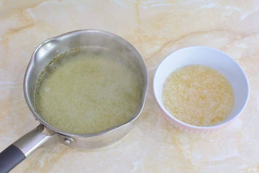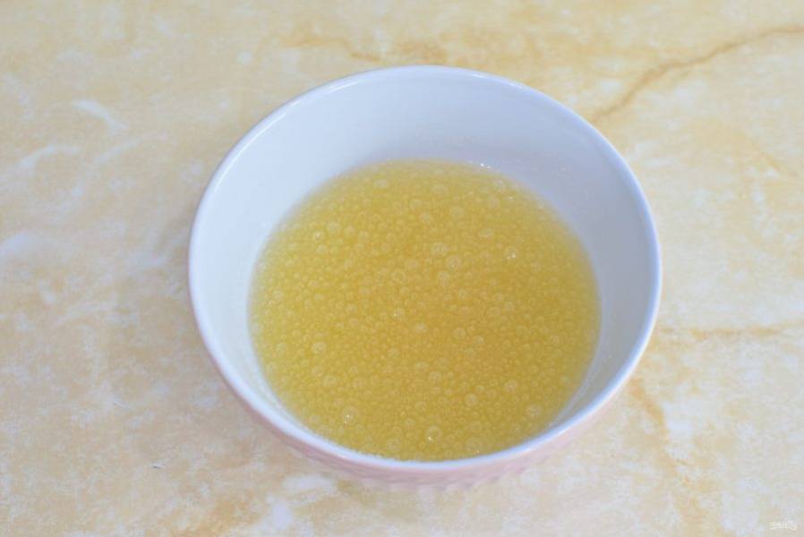 Отдельно залейте желатин холодной водой и оставьте для набухания.