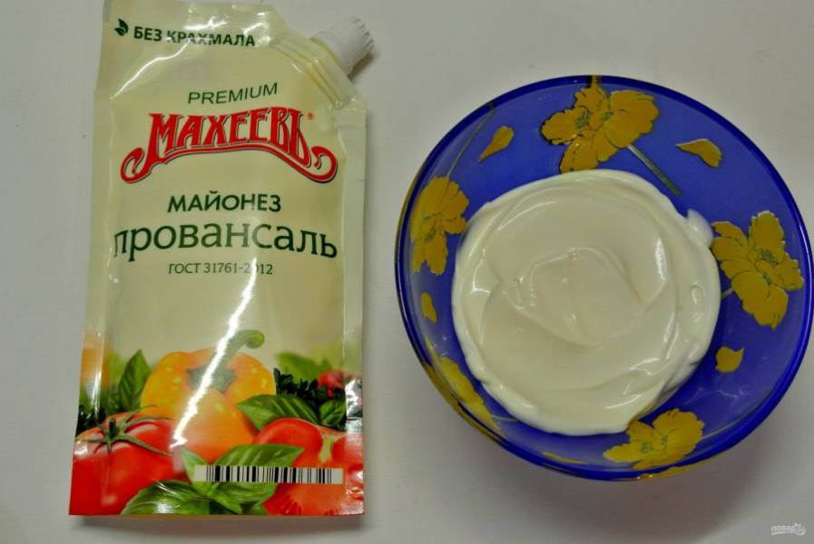В тарелку выложить майонез "Провансаль" Махеевъ.