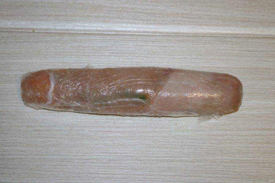Заверните рулет плотно в несколько слоёв пищевой плёнки.