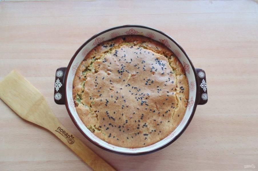 Выпекайте пирог в духовке, разогретой до 175-180 градусов 35-40 минут до золотистой корочки.