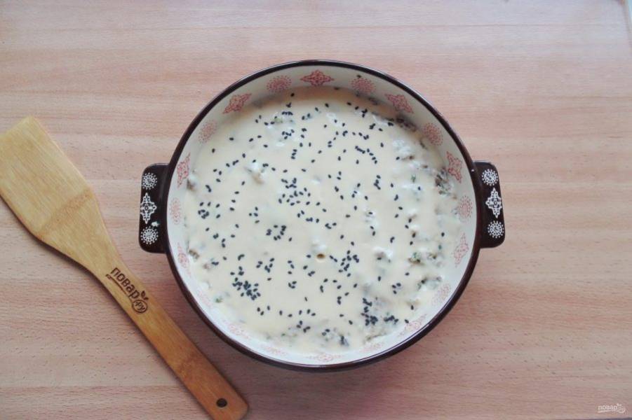 В форму для запекания, смазанную маслом, налейте половину теста.