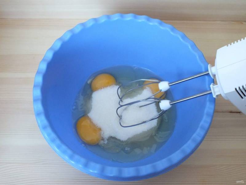 Яйца с сахаром взбейте в пену.
